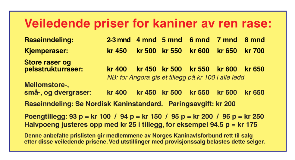 Priser på kaniner efter NKAL sin prislista: